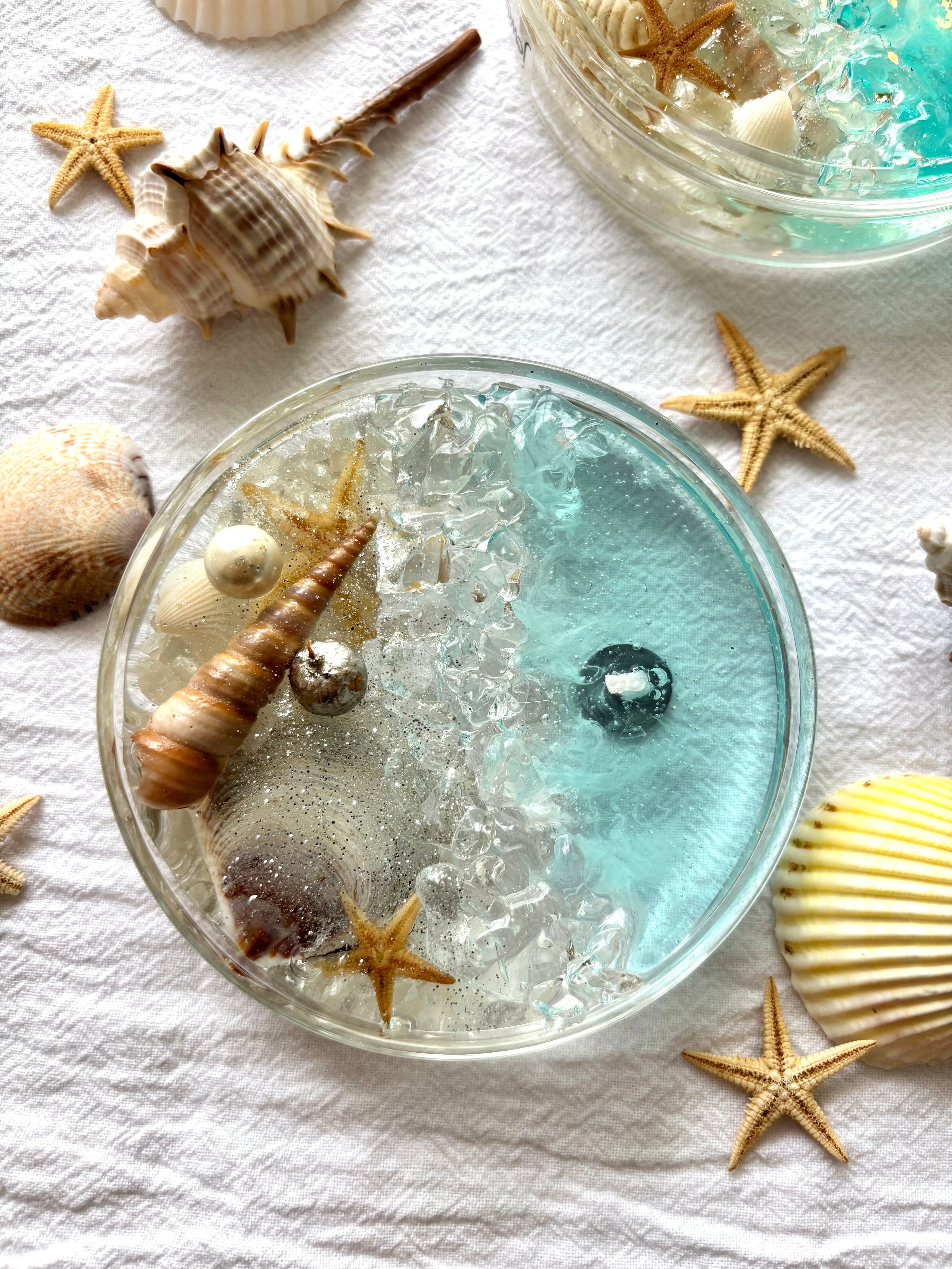 夏の海、波音をインスパイアした心落ち着くアートキャンドルです。
