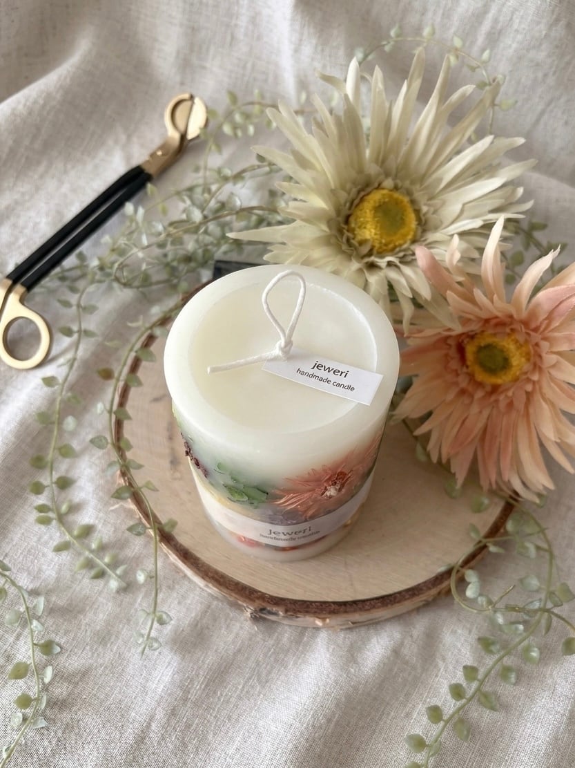 jewericandleの代名詞とも言えるボタニカルキャンドルは厳選された植物の選定から始まり、いくつもの工程を丁寧に積み重ねて生まれます。