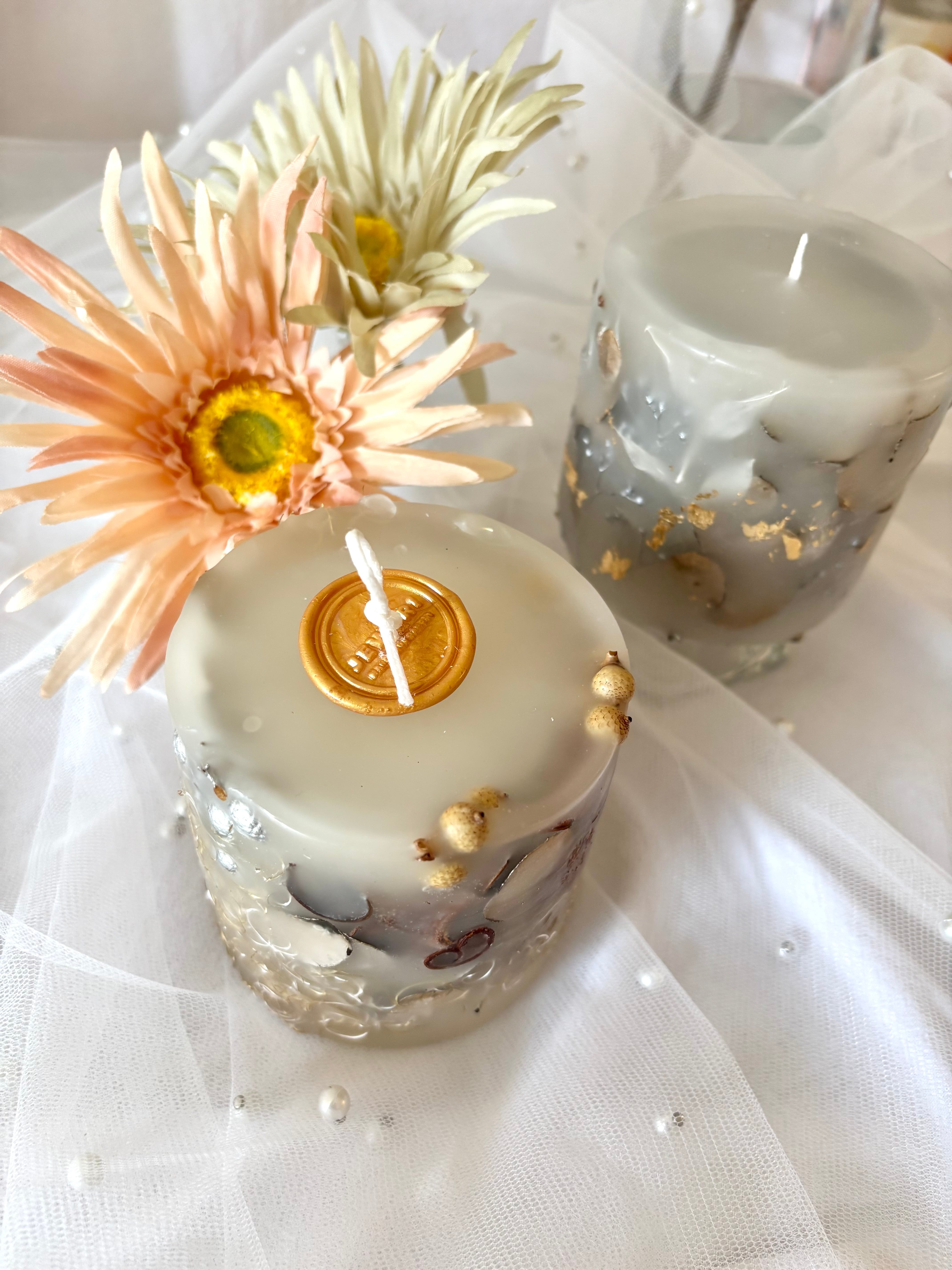 *火を灯す際は、飾りのシーリングスタンプなどの装飾は全て外し、芯をカットしてからお使いください。